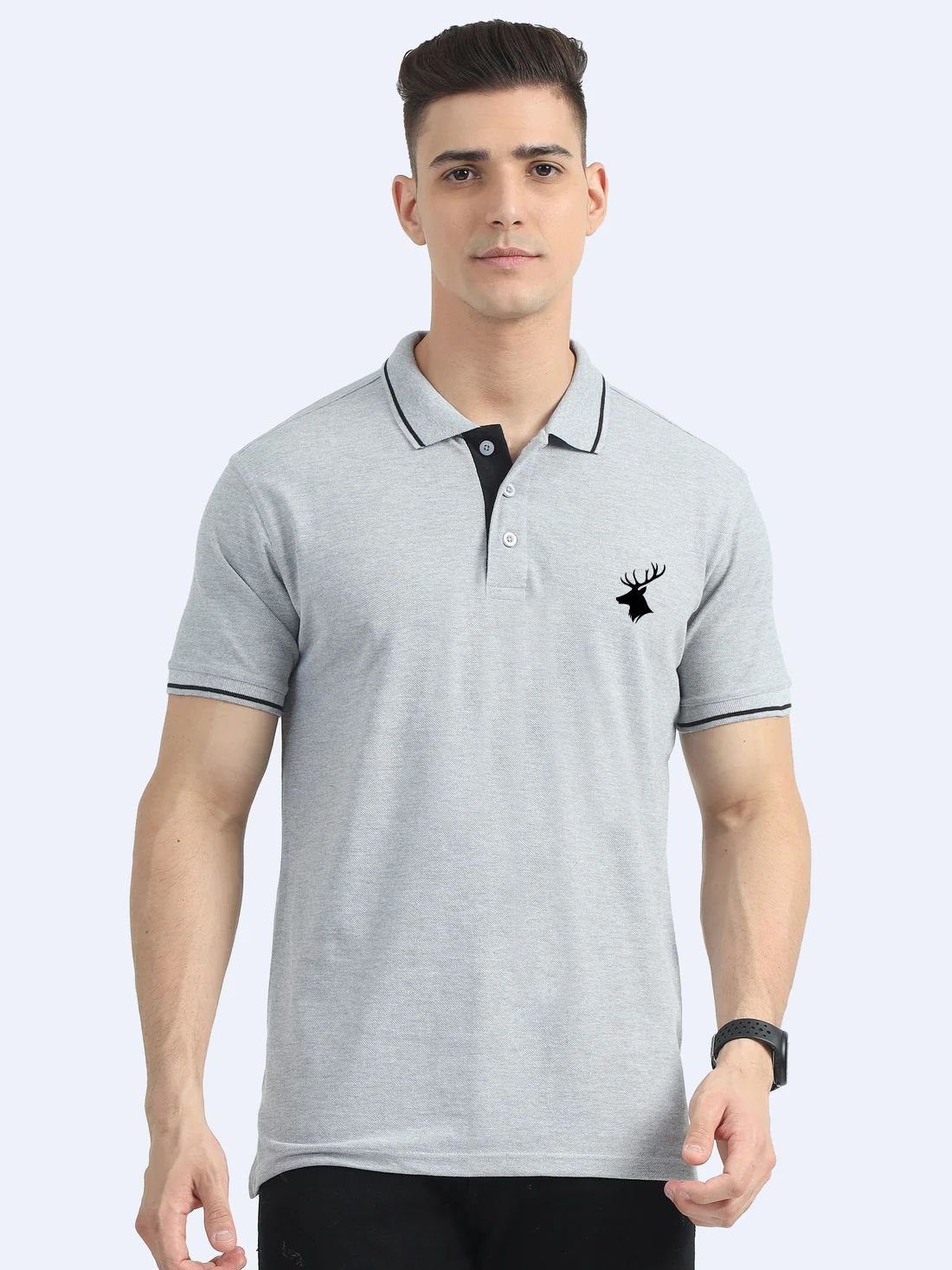 Wearock Stag Polo Tshirt – Grey with Black Tipping